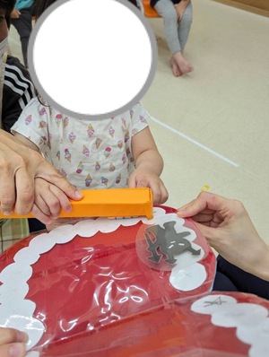 虫歯予防デーにちなんで、虫歯についてイラストや段ボールシアターを見ながら、お話を聞きました。