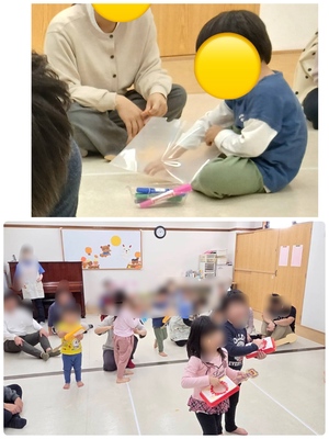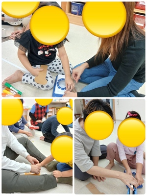 いつもとは違う雰囲気に、緊張しているお子さんもいらっしゃいましたが、おうちの方と一緒に過ごせるということで、いつも以上に笑顔が素敵な子どもたちでした。
